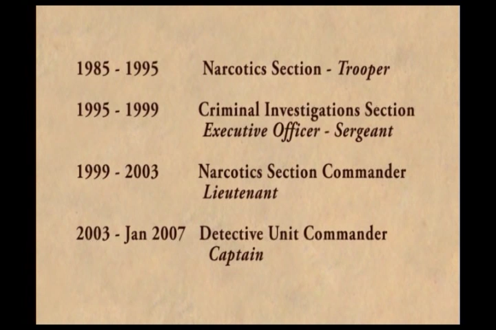 In June of 2007, he was invited to serve in the Staff Inspection Section, part of the Division of Standards and Training and recently retired from this section as the Commanding Officer. In the Staff Inspections Unit his responsibilities were to conduct and oversee the internal inspection, investigation and audits of all State Police units and personnel. His duties were to ensure the highest ethical standards and professional integrity by auditing compliance with established policies, procedures and regulations. This Section conducted management studies to identify risk factors and propose solutions to minimize the chances of Department failure or deficiency. These findings facilitate continuous improvement of all Department operations and practices.
